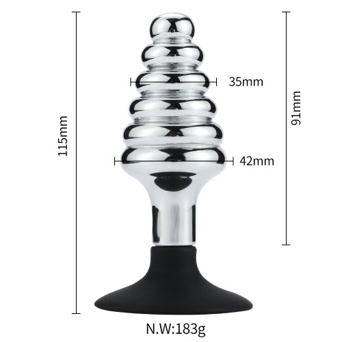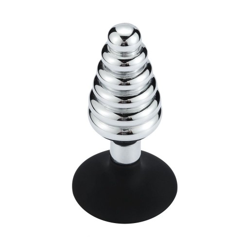 Buttplug i Metall med Riller og Sugekopp